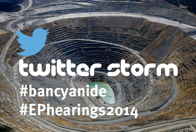 Este é o plan para mostrar a Europa que moitas e moitos de nós queremos que se pregunte sobre a prohibición do cianuro. Imos facer unha tormenta internacional en Twitter (twitterstorm) para que se escoiten as nosas voces.
