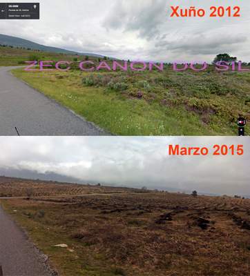Se a semana pasada denunciabamos unha plantación ilegal de eucaliptos, previa tala de bosque autóctono na RN2000 do ZEC Xubia-castro, desta volta tócalle ao ZEC Canón do Sil. No concello de Parada de Sil, ao O do lugar de Caxide e ao longo de estrada de Parada a Luintra (referenza catastral da parcela 32058A00200252) estase a realizar unha plantación de piñeiros dentro do ZEC Canón do Sil (ES1120014) con afectación aos hábitats comunitarios Breixeiras sexas europeas (cód. Hábitat CE 4030) e Carballeiras galaico-portuguesas (9230).