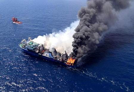 O caso do pesqueiro ruso (incurso por certo nunha investigación da CE por pesca ilegal) accidentado en Canarias que ardeu e acabou afundíndose 15 millas ao sur de Maspalomas (Gran Canaria), ten evidentes semellanzas co Prestige.