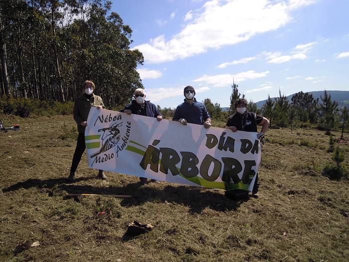 O día da árbore é unha data que Néboa Medio Ambiente nunca esquece, por moitas razóns, polo que reviindica, porque cada ano nos lembra a nosa especial vinculación coas árbores e os bosques galegos, porque as primeiras actividades da nosa asociación foron celebracións coma esta, …. Co paso do tempo en Néboa nos dimos conta de que Días da Árbore son moitas ao longo de todo o ano porque as árbores merecen coidados a miudo, pero con todo, nos encanta celebrar este día plantando así que hoxe así o fixemos no noso querido monte de Ancos, no concello de Neda, cun día espléndido. A pesares da pandemia sanitaria e coas restriccións propias do momento que nos impiden facer grandes xuntanzas, hoxé Néboa Medio Ambiente continuou coa súa plantación de piñeiros no monte de Ancos onde levamos moitísimos anos a traballar e onde xa imos tendo árbores de bo tamaño froito dos nosos coidados.