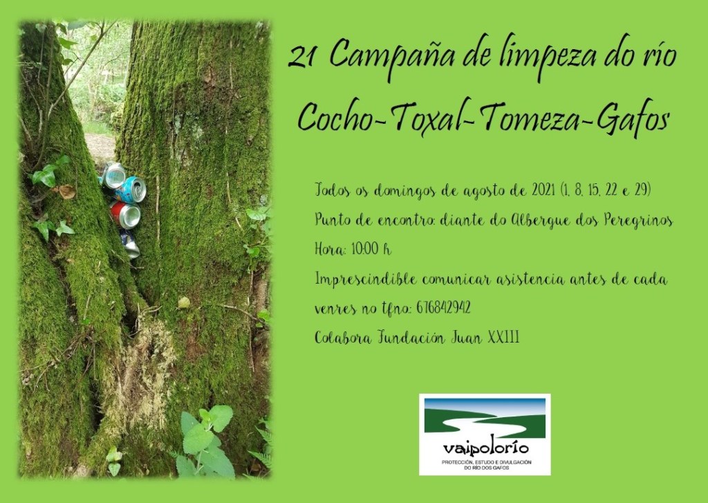 Convocatorias 21 Campaña de limpeza do río Cocho, Toxal, Tomeza, Gafos Publicado por: Federacion Ecoloxista Galega on 1 Agosto 20211 Agosto 2021 Fai clic para compartir en X (Se abre en una ventana nueva) X Feixe clic para compartir en Facebook (Se abre en una ventana nueva) Facebook Feixe clic para compartir en WhatsApp (Se abre en una ventana nueva) WhatsApp Feixe clic para compartir en Telegram (Se abre en una ventana nueva) Telegram Relacionado