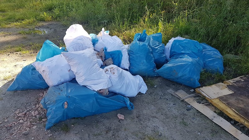 Anexamos fotos na que se pode apreciar sacos de restos de obra (3000 Kgs aprox.) así como 2 neveras e un arcón conxelador.