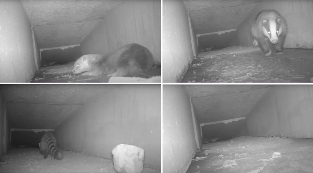 Así e todo, o esforzo aplicado non deparou unicamente boas novas para a lontra. Da análise dos 314 vídeos obtidos durante o seguimiento deste paso de fauna nos que puido constatarse o rexistro dalgunha especie, puido extraerse que a infraestrutura está sendo utilizada por roedores, insectívoros e carnívoros, o que supón exemplares de cando menos tres ordes diferentes de mamíferos: Carnivora, Rodentia e Eulipotyphla. Entre eles cabe destacar a confirmación do uso por parte do teixugo (Meles meles), a xeneta (Genetta genetta), o ourizo cacho (Erinaceus europaeus), e micromamíferos tales como o rato do campo (Apodemus sylvaticus) e exemplares adscritos por diversas similitudes á familia Soricidae, mais sen confirmación a nivel específico dado que as características das gravacións nestes casos non permitiron chegar a esta determinación en detalle con seguridade. Finalmente, neste mesmo espazo de incertidume se enmarcaron outros rexistros que poderían corresponder co murgaño de cabrera (Neomys anomalus), a rata común (Rattus norvegicus) –aínda sen descartar a súa posible confusión coa rata de agua (Arvicola sapidus), de estrutura semellante, a pesar de non ter localizado evidencias desta última na contorna inmediata-, así como exemplares da Familia Cricetidae. A continuidade dos traballos, combinada coa aplicación doutras metodoloxías específicas, poderían con seguridade aportar máis luz ao respecto.